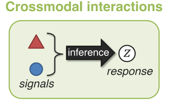 여러 모달리티(삼각형, 원 등)에서 들어오는 신호(signals) 를 종합해 추론(inference) 을 수행하고, 이를 기반으로 응답(response) 을 생성한다.