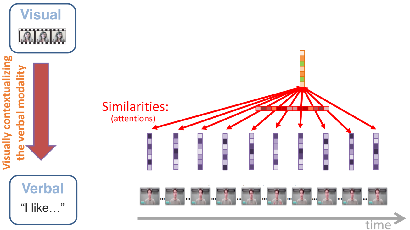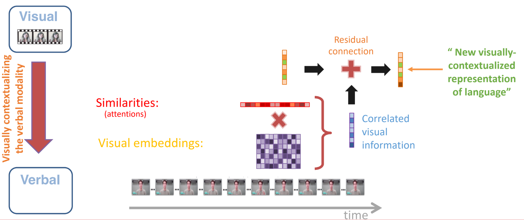 - 시각(Visual) 모달리티가 언어(Verbal) 모달리티를 맥락화(contextualize) 하는 과정.
