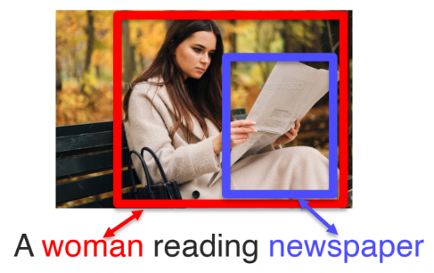 - 예를 들어, 텍스트와 이미지가 있을 때, 이미지 속 특정 객체가 텍스트의 특정 단어(혹은 구절)와 연결됨을 명시적으로 레이블하거나 바운딩 박스를 그려 매핑 정보를 기록한다.