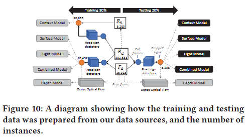 컨텍스트 모델을 학습시키려면 표지판의 부적절한 배치를 모델에 학습시키기 위해 표지판이 포함되지 않은 예(\(R_n\)로 표시)가 필요했다. 이 데이터 세트의 경우 잘린 이미지의 중심에 표지판이 포함되지 않도록 \(R_d\)에서 임의 영역을 잘랐습니다. - 데이터 세트 생성 방법과 샘플 수에 대한 요약은 아래 Figure 10에서 확인할 수 있다.