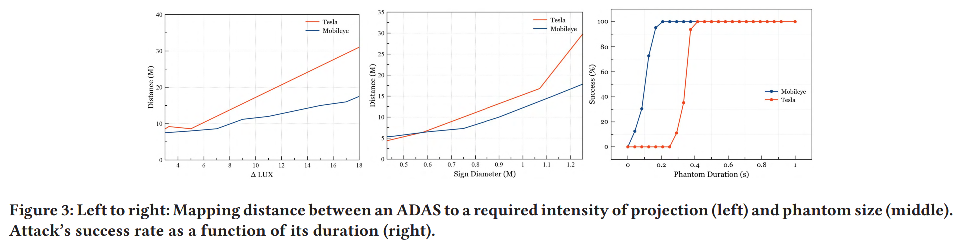 - 2가지의 인기있는 상업 ADASs (Mobileye 630, Tesla Model X HW 2.5/3) 을 real-world scenario 에서 split-second phantom attack 을 입증한다.