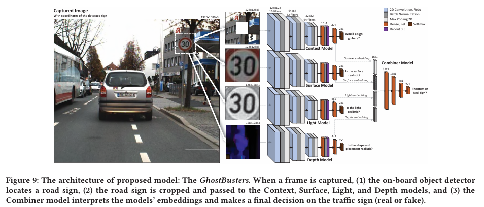 이러한 위협에 대응하기 위해서, 본 논문은 단지 camera sensor 만 사용해서 탐지된 객체가 phantom 인지 아니면 real 인지 판별해주는 countermeasure (GhostBusters) 를 제안한다. 이는 "committee of experts" approach 를 사용하고 4가지의 경량의 deep CNN 으로 부터 산출된 결과를 결합한다. 이 CNN 은 각각 객체의 light, context, surface 그리고 depth 에 기반하여 객체의 진위성을 평가한다.
