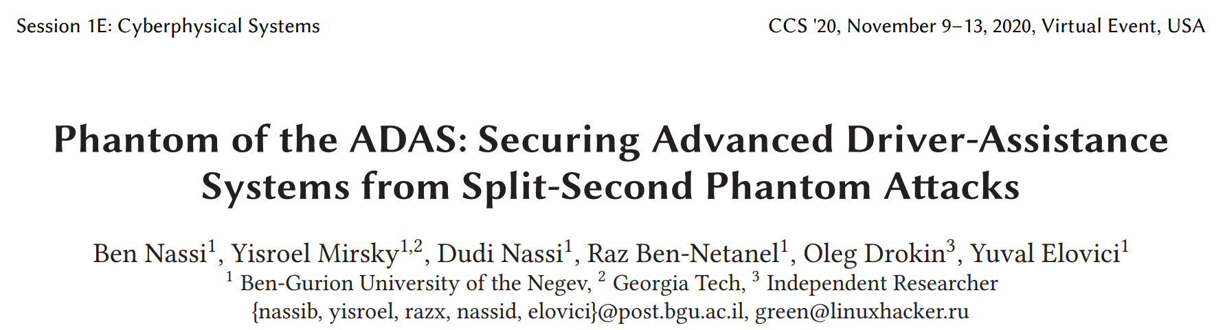 본 논문에서는 Tesla Model X (HW 2.5 & HW 3) 와 Mobileye 630 이 두 모델의 ADASs (advance driver-assistance systems) 사이의 "split-second phantom attacks" 이라는 scientific gap 에 대해서 연구한다. 아주 짧은 시간 (a few milliseconds) 동안 진짜 장애물/객체인 것처럼 보이는 깊이가 없는 물체를 다룬다.