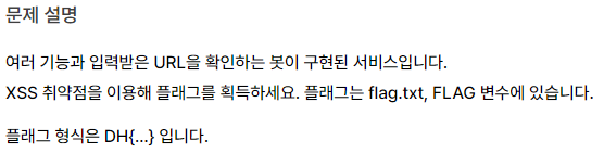 여러 기능과 입력받은 URL을 확인하는 봇이 구현된 웹 서비스이므로 웹으로 접속한다.