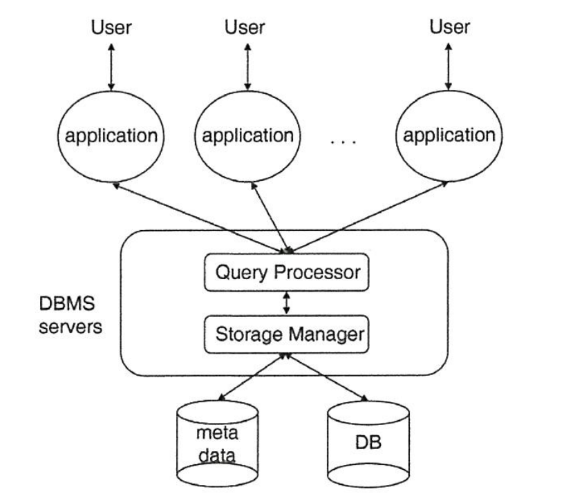 - DBMS : 사용자에게 데이터 관리에 필요한 기능을 제공한다. 이는 데이터를 define 하고 construct 하고 change 하고 delete 하고 approach 하고 manipulate 하는 기본적인 연산 기능을 제공한다. 또한, data abstraction, data independence, data security 등 사용자에게 데이터베이스 관리에 도움을 주는 다양한 기능을 제공한다.