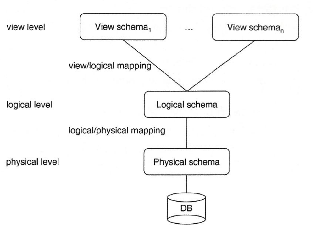 - Logical data independence : 뷰 스키마 변화 없이 논리적 스미카를 변화할 수 있는 기능