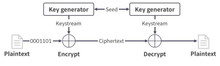 그래서, 송/수신자는 스트림을 공유하는 대신, 시드(Seed)라는 값을 공유하고, 이를 사전에 합의된 함수의 인자로 넣어 스트림을 각자 생성한다. 스트림 암호는 단순한 연산으로만 구현되므로 속도가 빠르다.