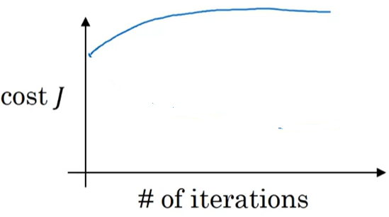 반복을 거침에 따라 cost function value가 증가한다. 즉 수렴하지 않는다. 최종적인 목표는 cost function이 작은 값으로 수렴하기를 기대하기 때문에 learning rate를 더 낮게 바꿔서 실험해보자.