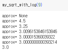 - python은 동적타입 언어이다. 즉, approx, guess, x 변수는 run-time에 결정된다.
