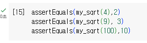 my_sqrt() 이 expected result를 산출하는지 아닌지를 쉽게 확인하기 위해 assert를 사용해볼 수 있다.