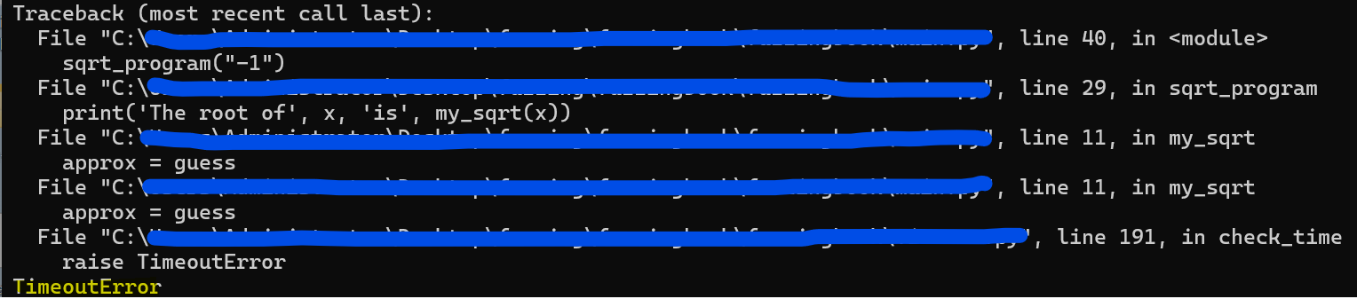 이와 같이 my_sqrt()를 음수로 호출하면 무한 loop에 빠진다. 이를 ExpectTimeout을 이용해서 문제를 해결할 수 있다.