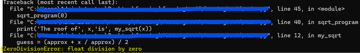 my_sqrt()의 경우에, √0 를 계산하면 ZeroDivisionError 를 초래할 것이다.
