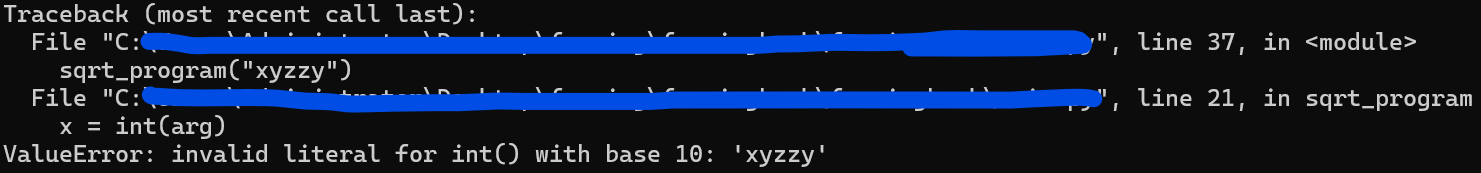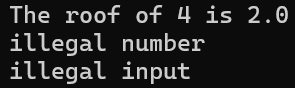 숫자로 sqrt_program를 호출하지 않을 때는 다음과 같이 exception이 발생한다.