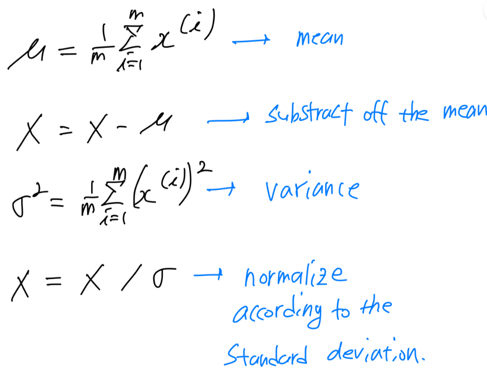 normalize를 하게 되면 cost function 의 윤곽이 길쭉한 모양에서 둥근 모양으로 될 것이다. 그래서 gradient descent 를 통통해 parameter를 optimize 하는데 더 쉽고 빠르게 만들어준다.