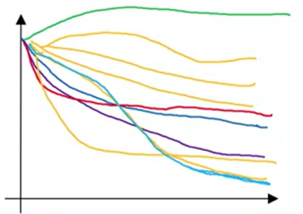 : 이 방법에서는 특정 hyperparameter 설정을 가진 model을 하나 실행하고, 하루나 며칠 동안 자동으로 learning을 진행하게 한다. 그러면 어떤 learning curve가 생성된다. 동시에 다른 hyperparameter 설정을 가진 두 번째 model 을 시작할 수 있다. 이 두 번 째 model 은 다른 learning curve 을 생성할 것이다. 동시에 세 번째 model 을 training 할 수 있다. 그리고 또 다른 model을 training하는데, 이는 수렴하지 않을 수도 있다. 이렇게 여러 model을 parallel 하게 training 하는 것이다. 이 방법을 통해 다양한 hyperparameter 설정을 시도할 수 있으며, 여러 model 의 결과를 비교하여 가장 잘 작동하는 model 을 빠르게 선택할 수 있다.