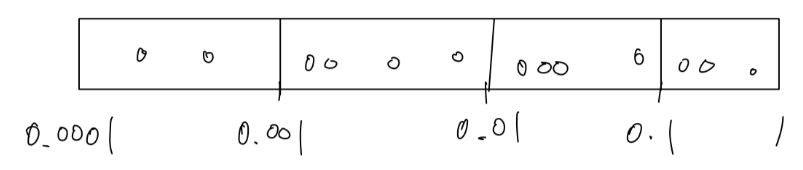 0.0001 과 0.1 사이에 25%, 0.001과 0.001 사이에 25%, 0.01 과 0.1 사이에 25%, 0.1 과 1 사이에 25%가 된다.