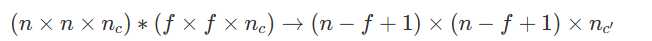 (n + 2p, n + 2p) image * (f, f) filter = (n + 2p - f + 1, n + 2p - f + 1) output