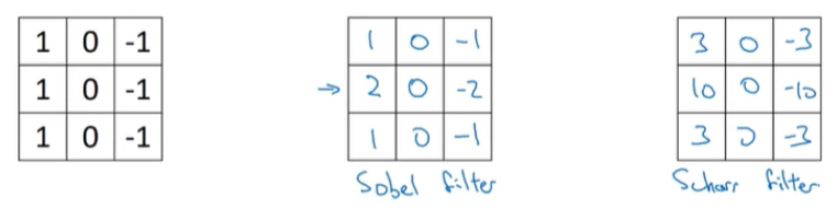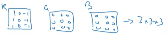 또는, vertical edge의 색상을 신경쓰지 않는다면, 3가지 channel에 모두 동일하게 vertical edge detector로 만들 수 있으며, 이렇게 만든다면 어느 색상의 모서리도 감지할 수 있는 filter가 된다.