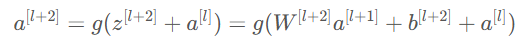a^[l+2]=g(z^[l+2]+W_s * a^[l])
