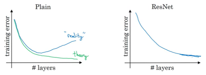 위 결과는 layer가 많아져도 train error를 저하시킬 수 있다는 것을 보여주고 있고, ResNet을 사용하면 중간에 있는 activation이 더 깊이 전달되어서 vanishing/exploding gradient 문제를 해결되는 것이다.