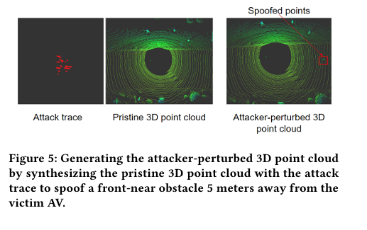 : 이는 우리의 설정 개선 후 더 많은 점을 주입할 수 있었다. 그러나 어떤 흔적에서도 LiDAR 기반 인식 파이프라인의 출력에서 스푸핑된 장애물을 관찰할 수 없었다.
