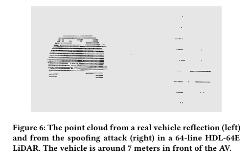 게다가, 비록 스푸핑 차량 타입의 장애물에 목표를 두지 않았음에도 불구하고, 논문은 LiDAR 기반 인지 process 이후에 성공적인 모든 attack에서 스푸핑된 장애물들이 차량으로 분류되었다.
