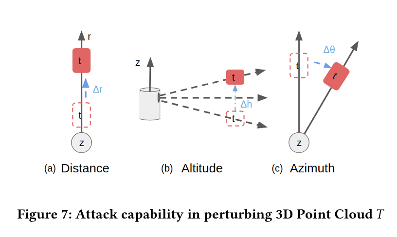 적대적 sensor attack 을 가지고 어떤 LiDAR-based AV 인지 시스템을 attack 하는 것은 3가지 구성요소로 공식화될 수 있다.