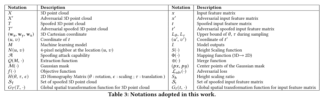 - LiDAR spoofing 이 machine learning model 입력을 변경하는 데 있어 spoofing 능력을 모델링하는 input perturbation function