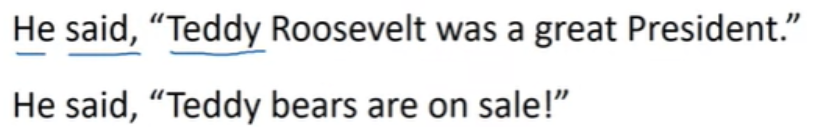 위와 같은 문장이 있을 때, 첫 두 단어의 정보뿐만 아니라 뒤에 있는 나머지 단어들의 정보를 아는 것도 매우 유용할 것이다. 첫 두세마디만 고려한다면, Teddy 라는 단어가 사람의 이름인지 확실하게 알 수 없다는 것이다. 아래 문장도 마찬가지이다. 첫 두세마디 만으로는 차이를 구별할 수 없다. 이 문제는 양방향으로 반복되는 BRNN 을 통해서 해결할 수 있다.