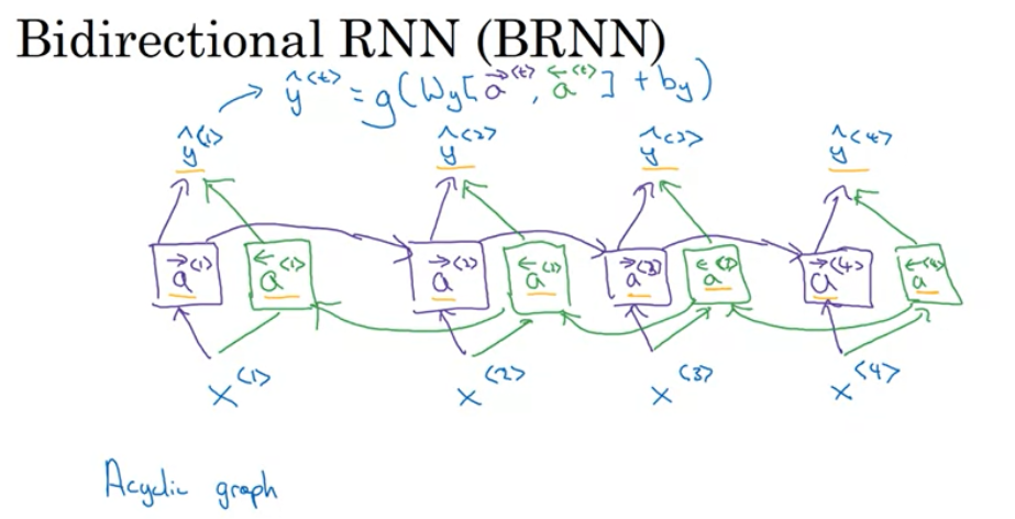 추가로 훨씬 더 강력한 모델을 만들 수 있는 두 가지 아이디어가 있는데, 하나는 Bidirectional RNN (BRNN) 이다.