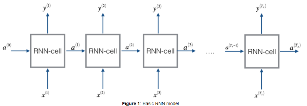 그리고 RNN 신경망 학습을 시작하기 전에 $ a^{<0>} $ 이 사용되는 것을 볼 수 있는데, 이것은 보통 무작위로 초기화하거나, 0으로 초기화한다. 0으로 초기화하는 경우가 가장 일반적이다.