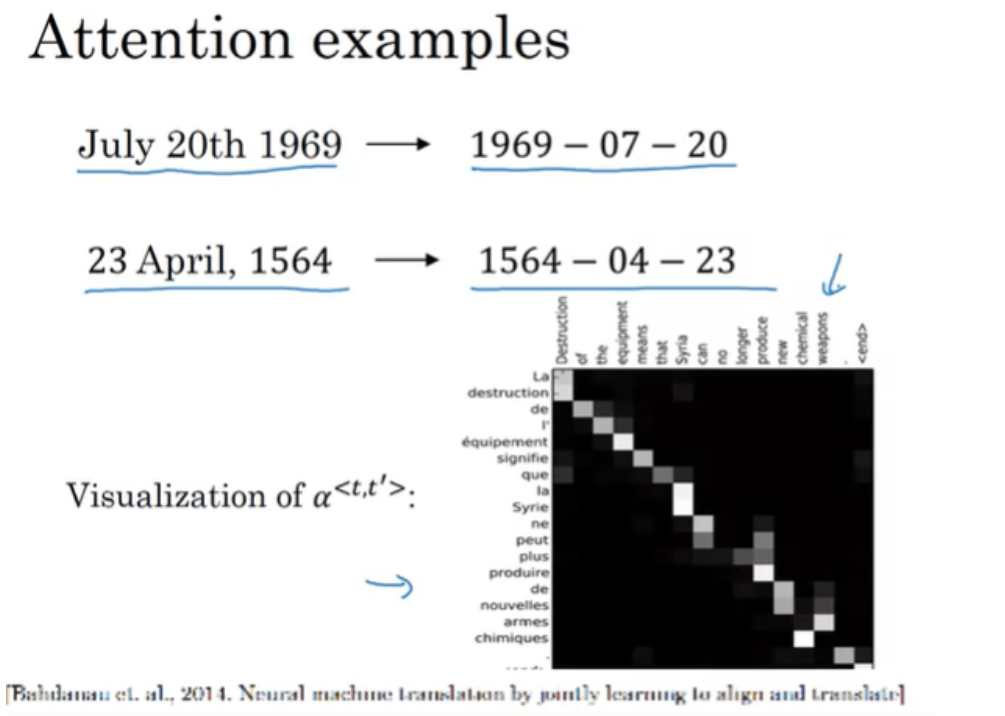 Attention model의 단점은 학습시간(연산량)이 quadratic time(cost)을 가지게 된다는 것이다. 만약 $ T_{x} $의 입력 문장과 $ T_{y} $의 output 문장이 있다면 attention 파라미터의 총 개수는 $T_{x} * T_{y} $가 된다. (이러한 cost를 절감하기 위한 논문도 존재한다.)