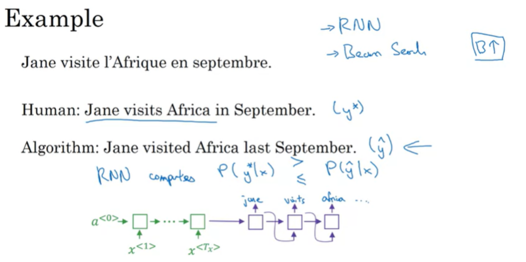 반대로 $ P(y^{*} | x) $ 가 $ P(\hat{y} | x) $ 보다 작다면, RNN 모델이 잘못된 번역을 더 높은 확률로 예측했으므로, RNN 모델에 문제가 있다고 판단할 수 있다.