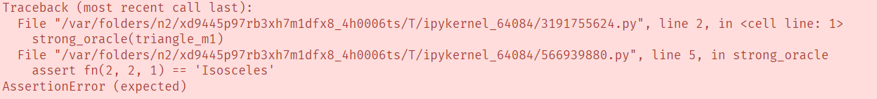 strong_oracle()은 이 결함을 감지할 수 있었으며, 이는 strong_oracle()이 아마도 더 나은 테스트 스위트임을 나타낸다.