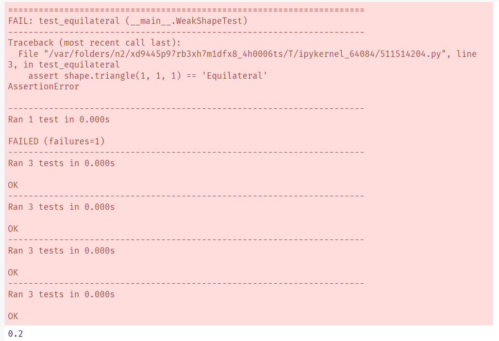 이제 우리의 테스트 스위트가 이 결함을 잡아낼 수 있는지 확인해보자. 먼저 weak_oracle()이 이 변화를 감지할 수 있는지 확인해볼 것이다.