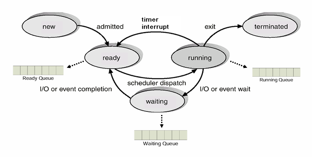 - process 를 시작하기 위해 kernel 은 program counter (다음에 실행될 명령어의 주소를 가지고 있는 register)를 _start 함수의 주소로 지정한다. // queue 구조를 사용