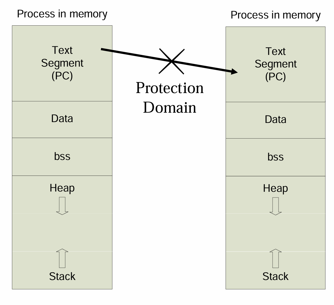 각 process 는 protection domain 을 통해 memory 접근이 제한된다.