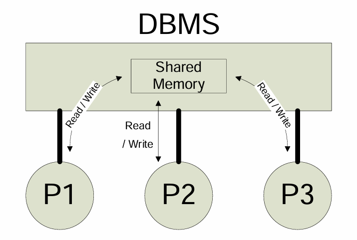 - 모든 프로세스는 읽기 / 쓰기 작업을 통해 데이터베이스 작업을 병렬적으로 수행