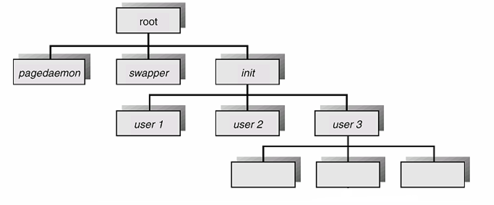 - UNIX에서 프로세스는 트리 구조로 관리된다.