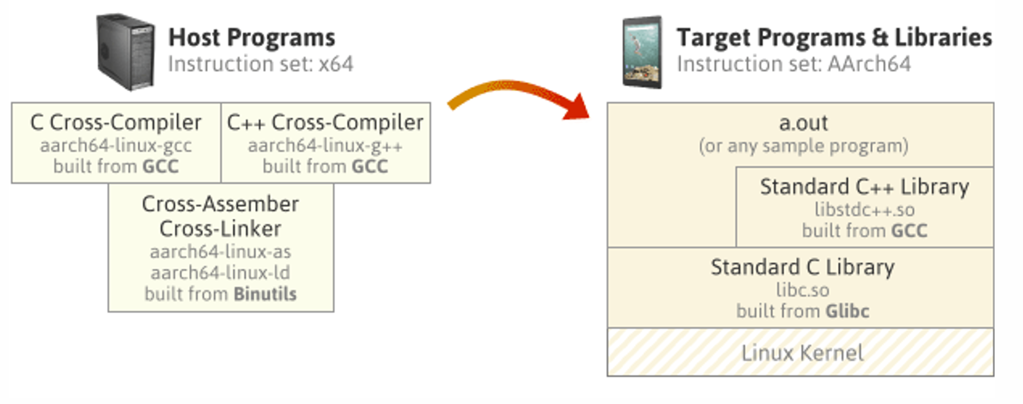 Source Code -> Cross Compiler -> Target Platform executable file (예 : a.out)