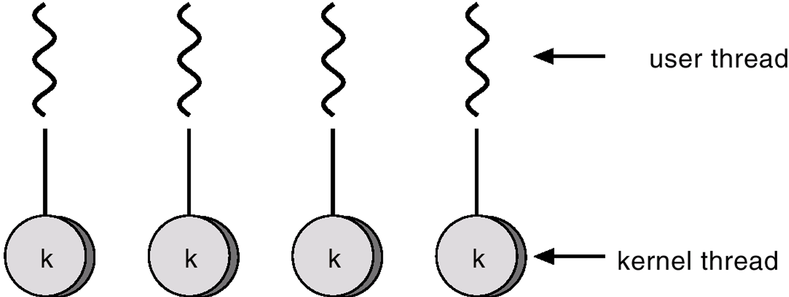 - 각 User Thread가 하나의 Kernel Thread와 매핑.