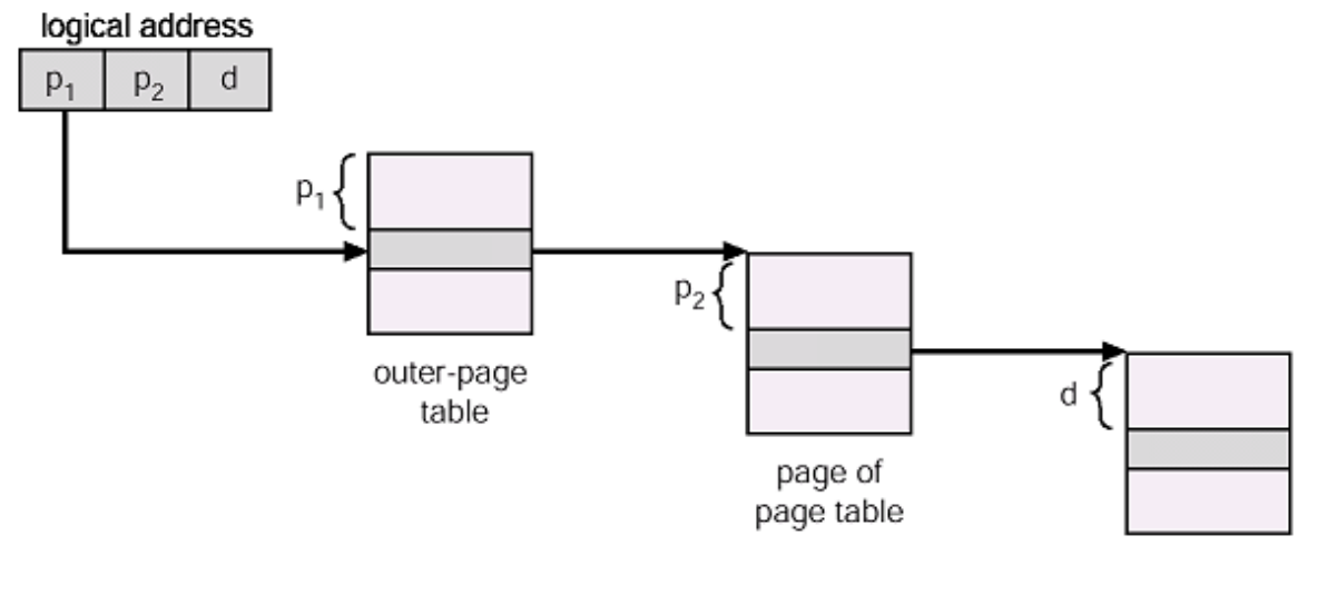 - Outer Page Table (p1) 을 하나 더 두어, Page Table (p2) 을 가리키도록 한다.