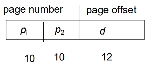 ex) 앞서의 예에서, 20 Bit 를 차지하는 Page 번호를 다시 아래와 같이 나눈다.- 10 Bit Page 번호