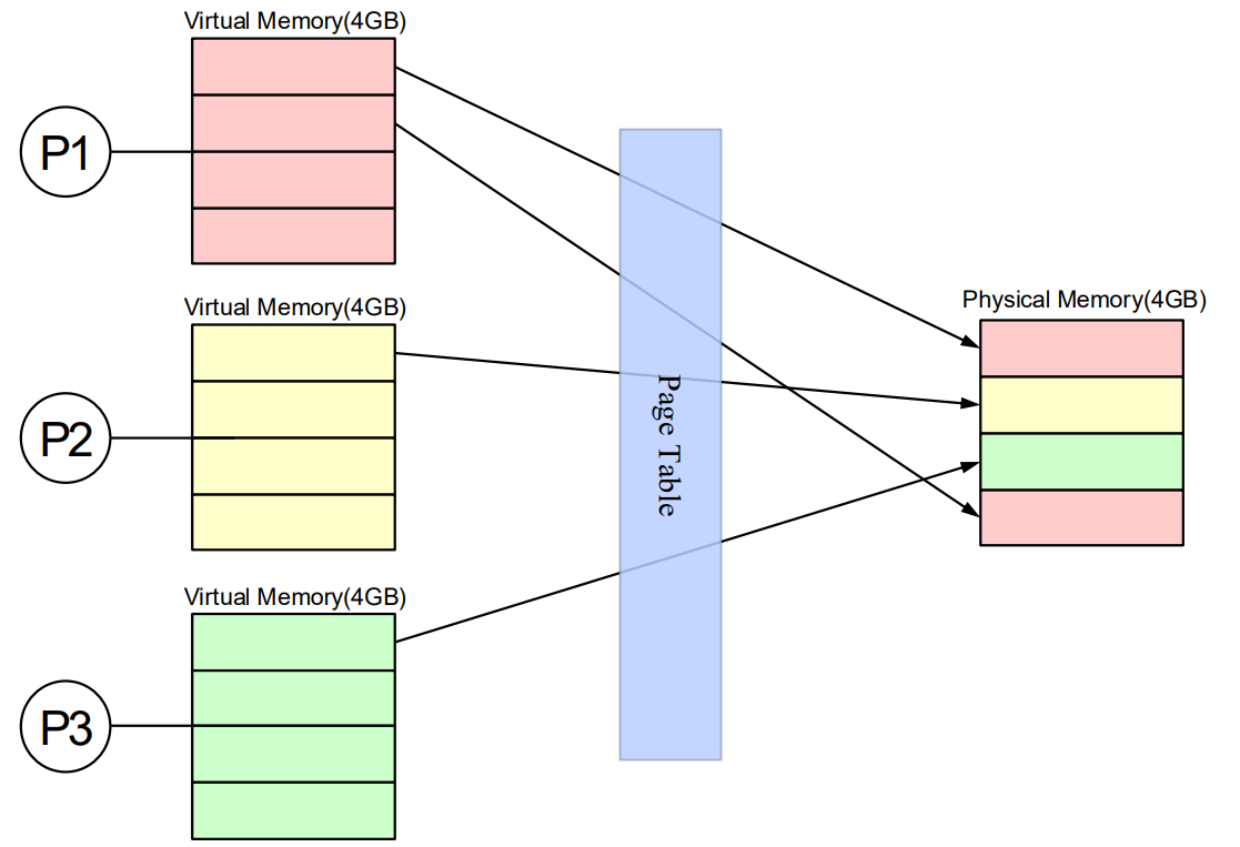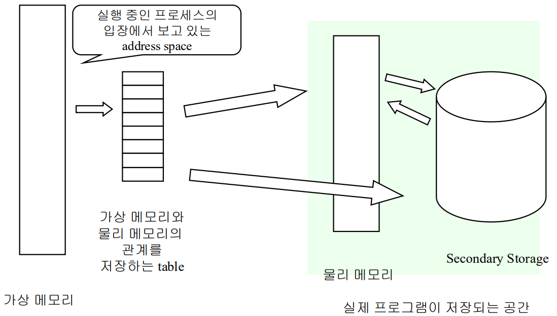 - 프로세스는 고유한 주소 공간을 가지며, 물리 메모리와의 독립성을 유지 (1:1 관계)