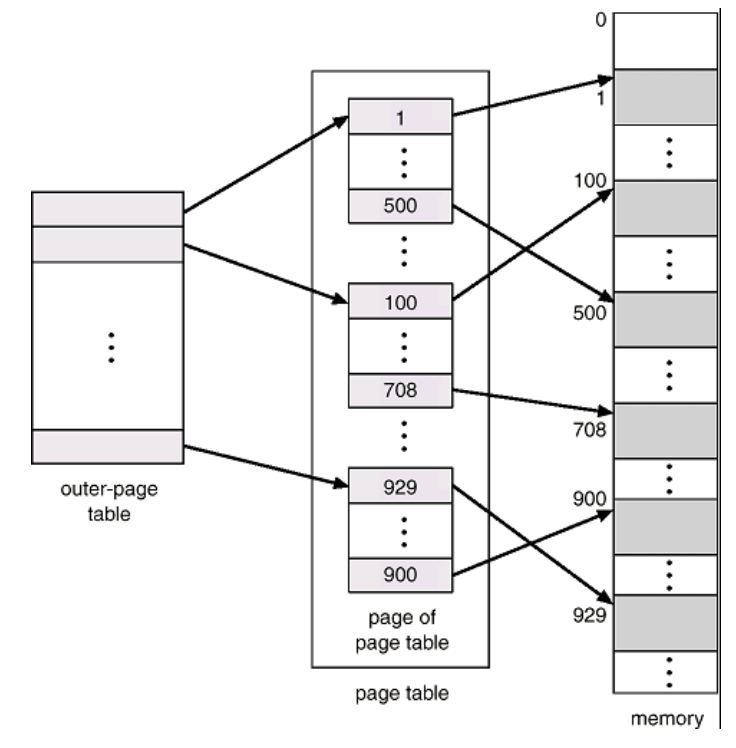 - Outer Page Table (p1) 을 하나 더 두어, Page Table (p2) 을 가리키도록 한다.