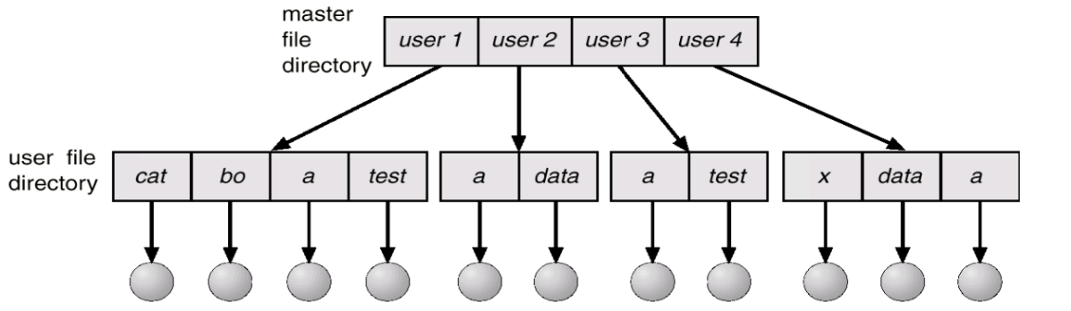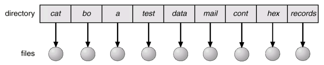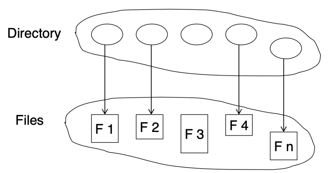 - 파일 정보 저장 위치: 파일 관련 Metadata는 디렉토리 구조(Directory Structure)에 저장됨.