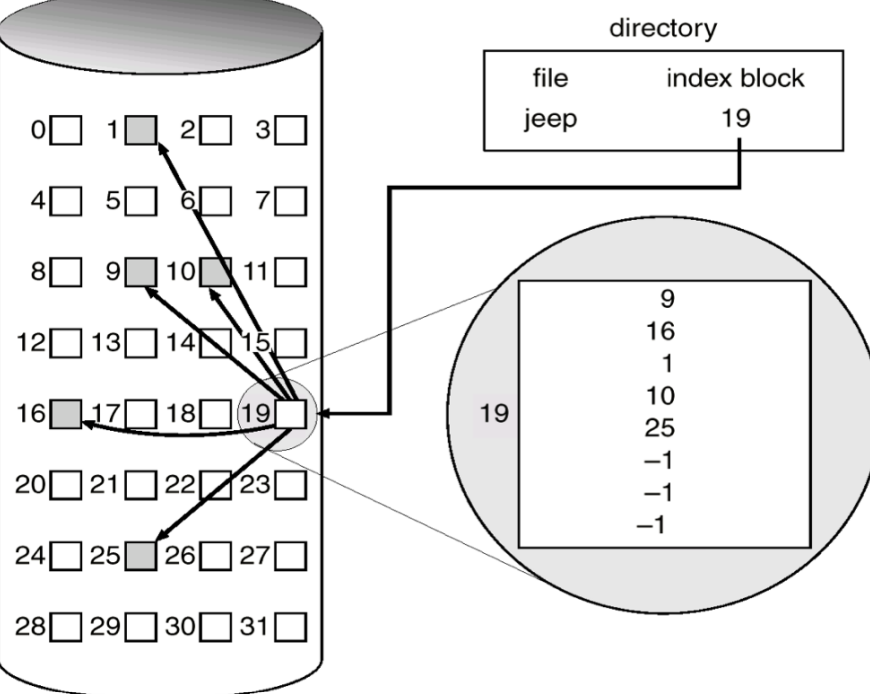 - 파일에 관련된 모든 블록의 포인터를 Index Block에 저장한다.