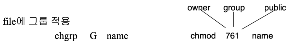 ex) 예: chgrp G file_name으로 그룹 변경.
