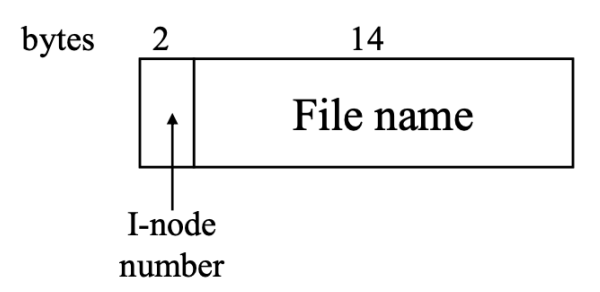 - 파일 이름(최대 14 bytes)과 I-node 번호를 포함.