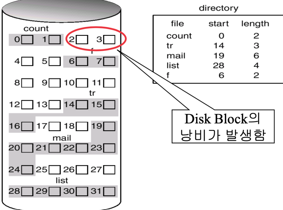 - OS 에서 File 끝에 예비용 Block 을 두거나, Fragmentation 같은 경우에는 Disk 공간을 낭비